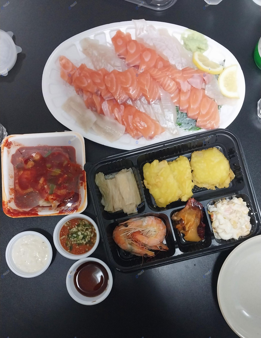 오늘 저녁은 광어랑 연어랑 반반 섞인 회 하나 시켜서 먹었네요.