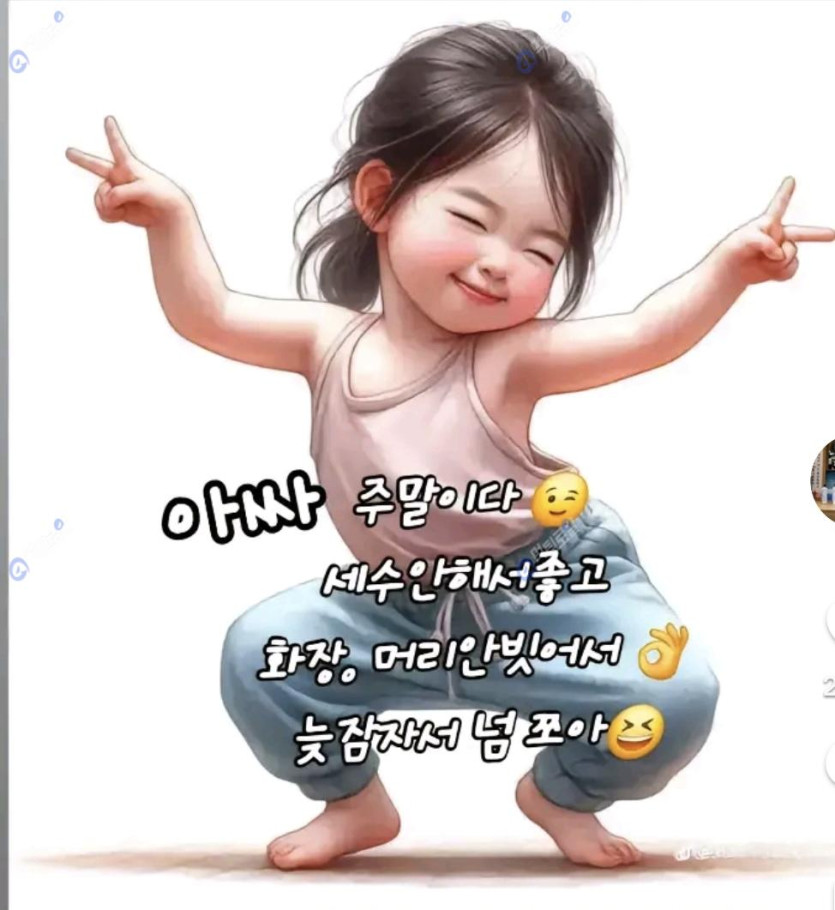 주말이다^^ 작성자 정보 나룻배 작성 작성일 2025.03.15 10:15 컨텐츠 정보 365 조회 13 댓글 목록 본문 주말은 어렇게 보냇겠죠? ^^ 0 추천 신고 관련자료 댓글 13 요미치님의 댓글 요미치 작성일 2025.03.15 10:51 공감 백프로 ㅎㅎ 신고 공감 백프로 ㅎㅎ 나룻배님의 댓글의 댓글 나룻배 작성일 2025.03.15 11:08 저두요 ㅋ 신고 저두요 ㅋ 메갓님의 댓글 메갓 작성일 2025.03.15 11:29 주말 너무 좋아요 신고 주말 너무 좋아요 나룻배님의 댓글의 댓글 나룻배 작성일 2025.03.15 12:01 저두 그래요 ㅋ 신고 저두 그래요 ㅋ 돈키호테님의 댓글 돈키호테 작성일 2025.03.15 11:30 맞습니다 맞고요 신고 맞습니다 맞고요 나룻배님의 댓글의 댓글 나룻배 작성일 2025.03.15 12:01 ㅋㅋㅋ 신고 ㅋㅋㅋ 성남은후님의 댓글 성남은후 작성일 2025.03.15 11:41 주말이네요 신고 주말이네요 나룻배님의 댓글의 댓글 나룻배 작성일 2025.03.15 12:02 네 ㅋ 신고 네 ㅋ 스네이님의 댓글 스네이 작성일 2025.03.15 12:47 주말 화이팅 신고 주말 화이팅 나룻배님의 댓글의 댓글 나룻배 작성일 2025.03.15 13:24 건승하새요 ㅎㅎ 신고 건승하새요 ㅎㅎ 루로아노님의 댓글 루로아노 작성일 2025.03.15 21:47 좋은주말되세용 신고 좋은주말되세용 망고마미님의 댓글 망고마미 작성일 2025.03.16 07:42 화이팅ㅎㅎㅎㅎㅎ 신고 화이팅ㅎㅎㅎㅎㅎ 이색대가님의 댓글 이색대가 작성일 2025.03.16 17:38 주말 화이팅 신고 주말 화이팅 로그인한 회원만 댓글 등록이 가능합니다. 목록