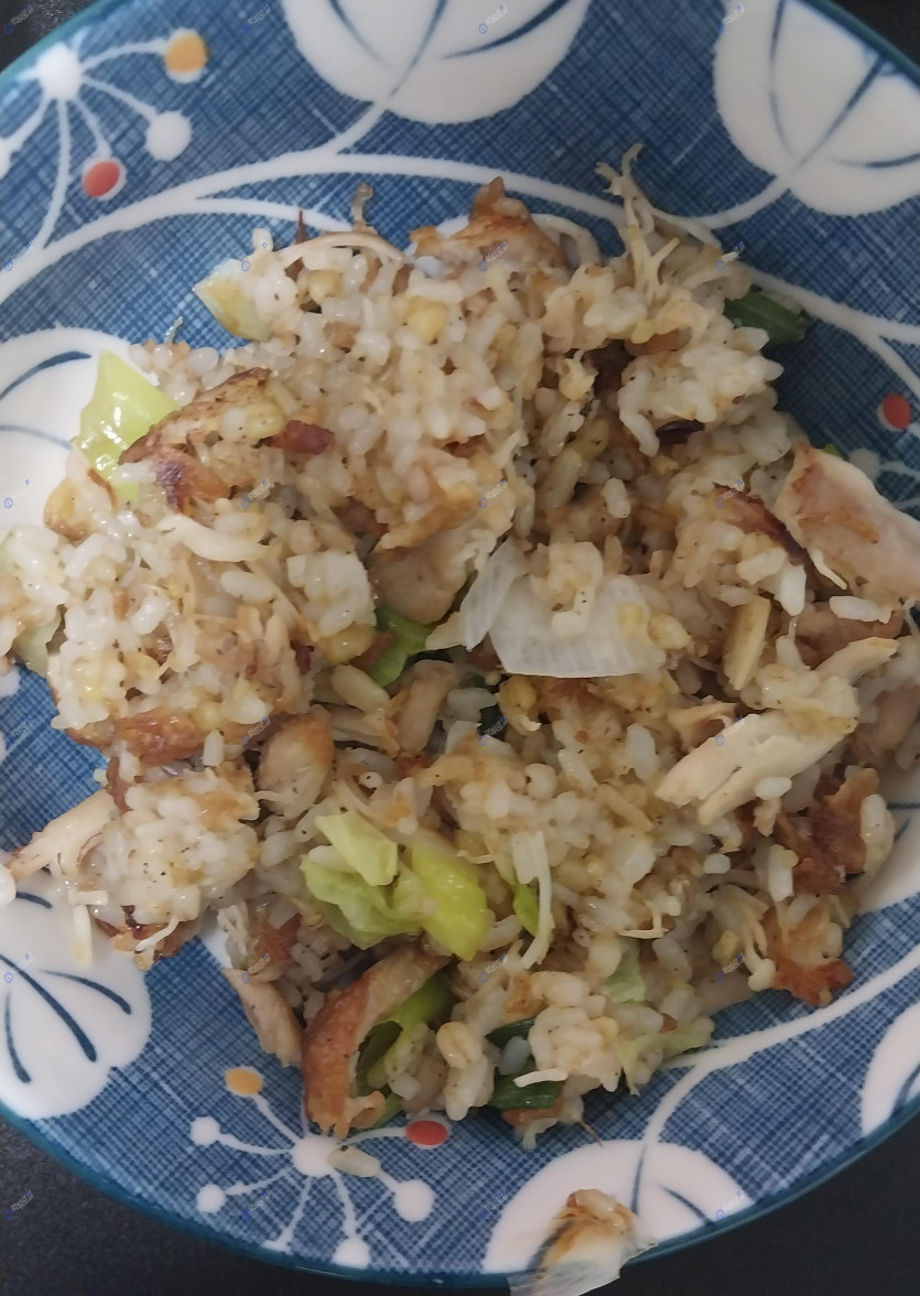 오늘 저녁엔 어제 먹고 남은 비비큐치킨을 활용하여 치킨볶음밥을 만들어 봤습니다. 그리고 수프랑 함께 먹었네요.