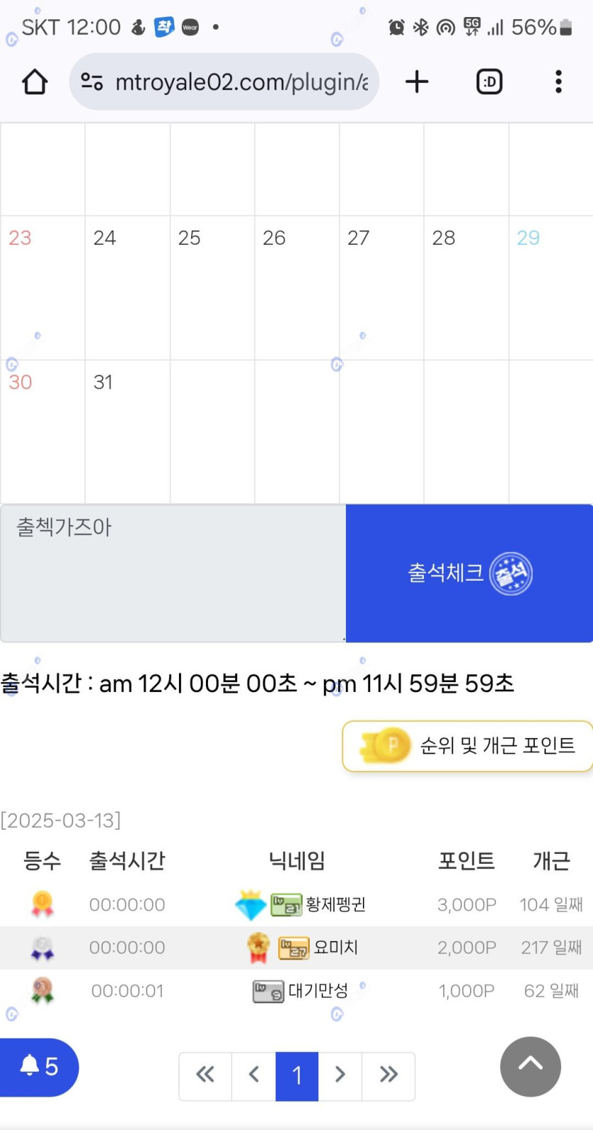 요즘 다들 출석에 시무륵해지신듯ㅎ
