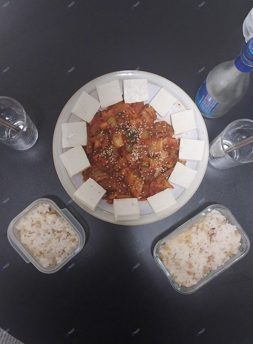 김치,돼지고기 넣고 맛있게 두부김치 만들어서 저녁먹었습니다.