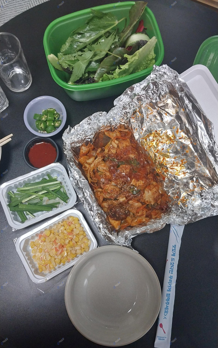 오늘 저녁에는 간만에 야채곱창 시켰어요.