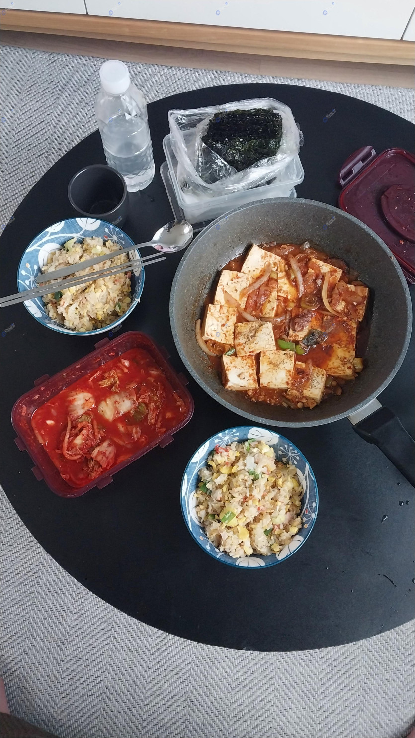 식사이벤트 아침) 직접 만든 두부조림과 볶음밥