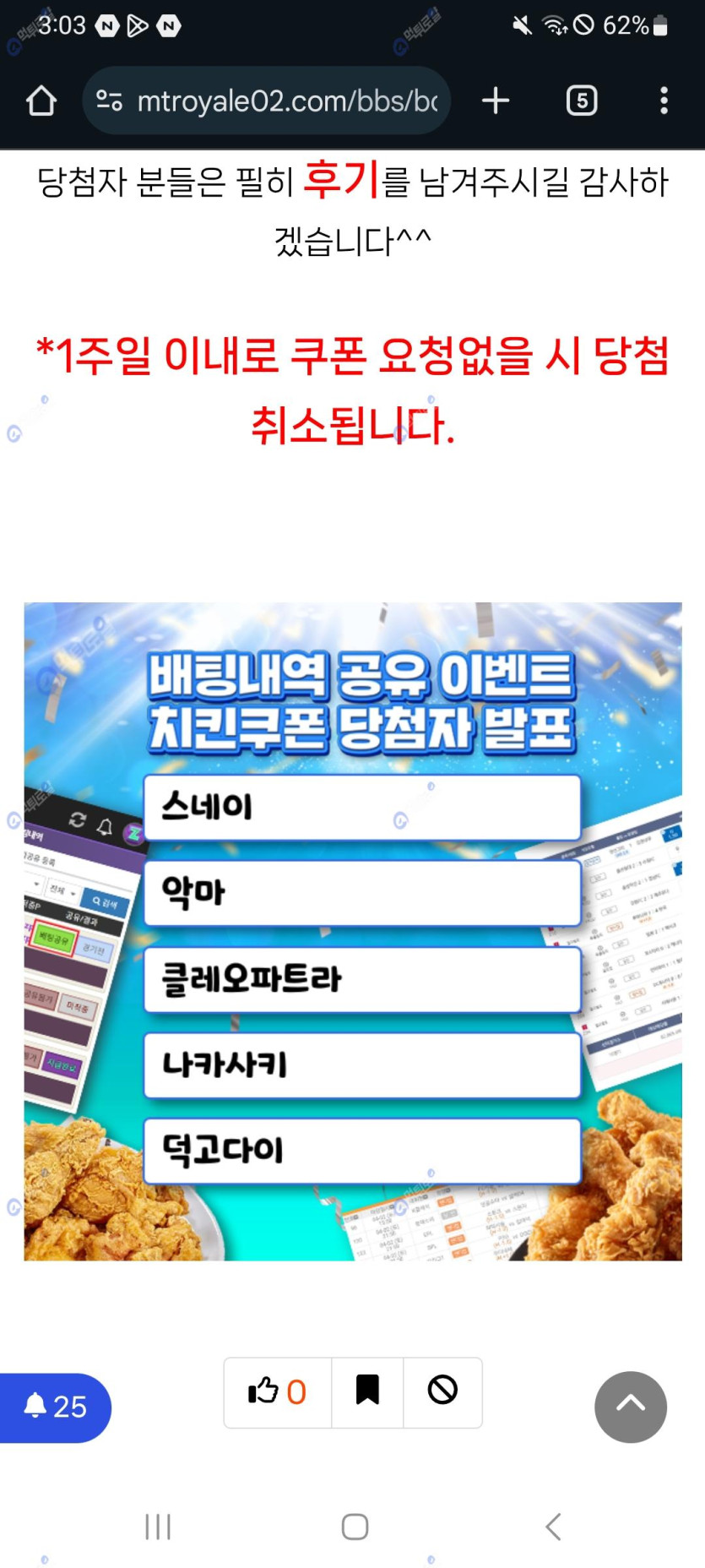 이벤트당첨 감사합니다 ^~^ 작성자 정보 나카사키 작성 작성일 2025.03.03 03:04 컨텐츠 정보 404 조회 5 댓글 목록 본문 배팅공유 이벤투 당첨 나이스요~.~ 0 추천 신고 관련자료 댓글 5 망고마미님의 댓글 망고마미 작성일 2025.03.03 04:19 당첨 ㅎㅎㅎㅎㅎㅎ 신고 당첨 ㅎㅎㅎㅎㅎㅎ 나룻배님의 댓글 나룻배 작성일 2025.03.03 06:03 축하드려요 ㅎ 신고 축하드려요 ㅎ 성남은후님의 댓글 성남은후 작성일 2025.03.03 06:18 추카해용 신고 추카해용 돈키호테님의 댓글 돈키호테 작성일 2025.03.03 06:38 축하드려요 굿굿 신고 축하드려요 굿굿 쿠쿠케케님의 댓글 쿠쿠케케 작성일 2025.03.03 08:08 축하해요🫡 신고 축하해요🫡 로그인한 회원만 댓글 등록이 가능합니다. 목록