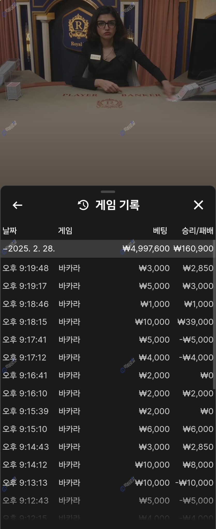 [베팅공유이벤트참여] 금일자 바카라내역..
