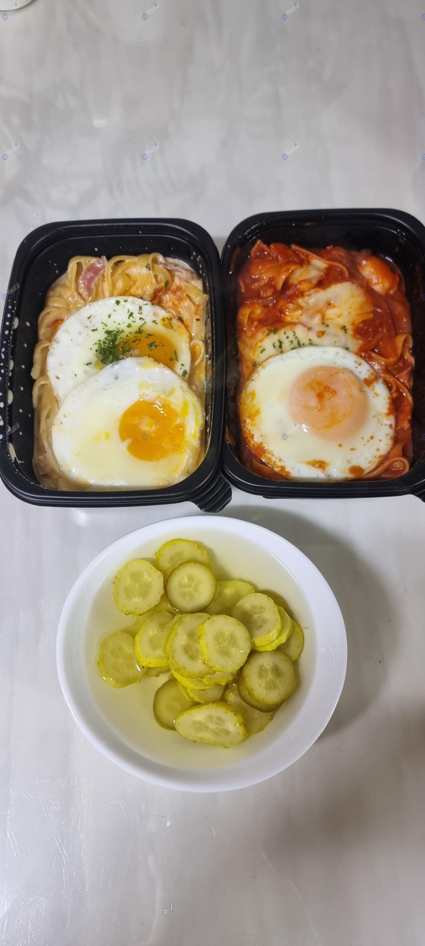 베이컨 토마토 파스타 계란반숙 후라이 추가