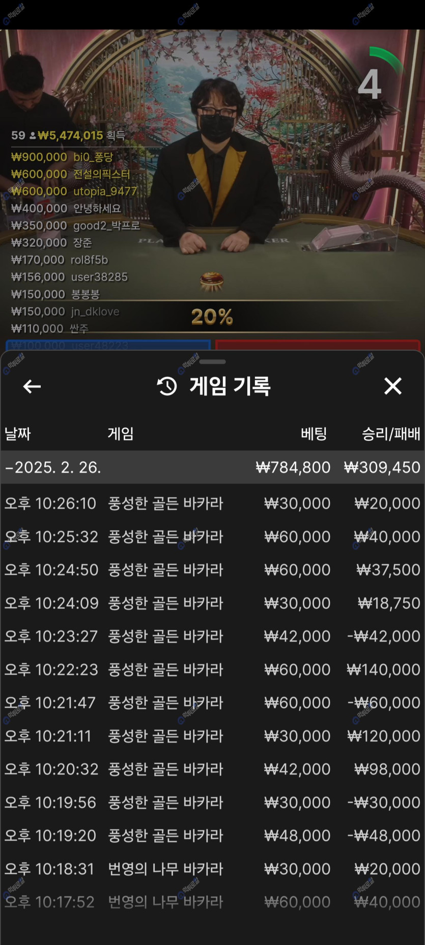 롤링 및 배팅 내역 공유