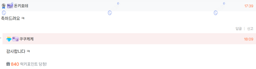 오늘 럭키 포인트 2번째! 작성자 정보 쿠쿠케케 작성 작성일 2025.02.24 18:17 컨텐츠 정보 294 조회 22 댓글 목록 본문 조쿠연 0 추천 신고 관련자료 댓글 22 프강사님의 댓글 프강사 작성일 2025.02.24 18:18 추카드려요 신고 추카드려요 쿠쿠케케님의 댓글의 댓글 쿠쿠케케 작성일 2025.02.24 18:18 감사합니당! 신고 감사합니당! 느바전문가님의 댓글 느바전문가 작성일 2025.02.24 18:18 축하드려용 신고 축하드려용 쿠쿠케케님의 댓글의 댓글 쿠쿠케케 작성일 2025.02.24 20:41 감사해용 신고 감사해용 까이지님의 댓글 까이지 작성일 2025.02.24 18:23 와축하드립니더 신고 와축하드립니더 쿠쿠케케님의 댓글의 댓글 쿠쿠케케 작성일 2025.02.24 20:41 굿굿 까이지님도 걸리쥬아 신고 굿굿 까이지님도 걸리쥬아 강민군님의 댓글 강민군 작성일 2025.02.24 18:26 저도 2번이요ㅎ 신고 저도 2번이요ㅎ 쿠쿠케케님의 댓글의 댓글 쿠쿠케케 작성일 2025.02.24 20:42 오오 축하드려요/! 신고 오오 축하드려요/! 강민군님의 댓글의 댓글 강민군 작성일 2025.02.24 22:21 감사합니다 신고 감사합니다 나룻배님의 댓글 나룻배 작성일 2025.02.24 18:28 축하드려요 신고 축하드려요 나랑드콜라님의 댓글 나랑드콜라 작성일 2025.02.24 18:32 축하합니당 신고 축하합니당 쿠쿠케케님의 댓글의 댓글 쿠쿠케케 작성일 2025.02.24 20:42 감사합니당! 신고 감사합니당! 토왕성춘님의 댓글 토왕성춘 작성일 2025.02.24 18:39 축하드려요ㅎㅎ~ 신고 축하드려요ㅎㅎ~ 쿠쿠케케님의 댓글의 댓글 쿠쿠케케 작성일 2025.02.24 20:42 감사합니다ㅎㅎ 신고 감사합니다ㅎㅎ 돈키호테님의 댓글 돈키호테 작성일 2025.02.24 18:54 축하드려요 ㅎ 신고 축하드려요 ㅎ 쿠쿠케케님의 댓글의 댓글 쿠쿠케케 작성일 2025.02.24 20:43 굿굿 고맙습니다 신고 굿굿 고맙습니다 록리님의 댓글 록리 작성일 2025.02.24 19:16 축하해요~ 신고 축하해요~{emo:onion-070.gif:50} 쿠쿠케케님의 댓글의 댓글 쿠쿠케케 작성일 2025.02.24 20:43 감사합니당 신고 감사합니당 민바오님의 댓글 민바오 작성일 2025.02.24 23:16 축하드립니다 신고 축하드립니다 요망한것님의 댓글 요망한것 작성일 2025.02.25 01:13 축하드립니다아으앙 신고 축하드립니다아으앙 성남은후님의 댓글 성남은후 작성일 2025.02.25 05:07 축하합니다 신고 축하합니다 스네이님의 댓글 스네이 작성일 2025.02.25 15:08 축하하구연 ㅎㅎ 신고 축하하구연 ㅎㅎ 로그인한 회원만 댓글 등록이 가능합니다. 목록