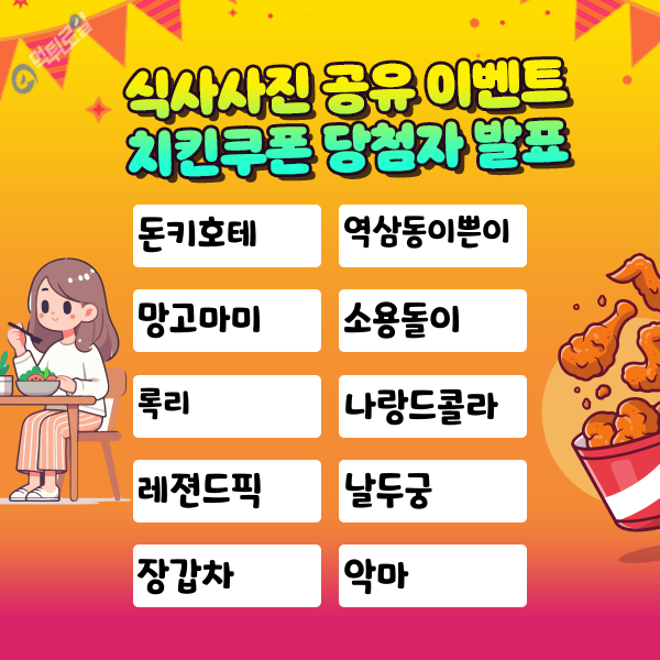 1:1 문의로 치킨쿠폰 요청부탁드립니다.