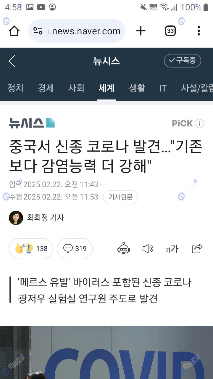 중국에서 새로운 코로나 발견 작성자 정보 돈키호테 작성 작성일 2025.02.22 16:59 컨텐츠 정보 360 조회 11 댓글 목록 본문 헐....미친 박쥐 ㄷㄷㄷㄷ 0 추천 신고 관련자료 댓글 11 쿠쿠케케님의 댓글 쿠쿠케케 작성일 2025.02.22 17:07 ㅈ됐네 또....... 신고 ㅈ됐네 또....... 돈키호테님의 댓글의 댓글 돈키호테 작성일 2025.02.22 17:12 바이러스 진짜 무서운디 ㅜ 신고 바이러스 진짜 무서운디 ㅜ 성남은후님의 댓글 성남은후 작성일 2025.02.22 17:33 또오나 신고 또오나 나룻배님의 댓글 나룻배 작성일 2025.02.22 17:48 중국은 바이러스 생산진가 ㅡㅡ 신고 중국은 바이러스 생산진가 ㅡㅡ 요미치님의 댓글 요미치 작성일 2025.02.22 17:50 헉 무섭다ㅡㅡ 신고 헉 무섭다ㅡㅡ 민바오님의 댓글 민바오 작성일 2025.02.22 17:58 지금도 경기 안 좋은데 ㅠㅠ 신고 지금도 경기 안 좋은데 ㅠㅠ 악마님의 댓글 악마 작성일 2025.02.22 18:03 아..증말 중국은 왜그러지.ㅠㅠ 신고 아..증말 중국은 왜그러지.ㅠㅠ 블루님의 댓글 블루 작성일 2025.02.22 18:27 점점 진화 하네요,,,,ㅠ 신고 점점 진화 하네요,,,,ㅠ 라따또이님의 댓글 라따또이 작성일 2025.02.22 18:34 헐 조심해야겠네요 신고 헐 조심해야겠네요 망고마미님의 댓글 망고마미 작성일 2025.02.22 19:29 ㄷㄷㄷㄷㄷㄷ 신고 ㄷㄷㄷㄷㄷㄷ 요망한것님의 댓글 요망한것 작성일 2025.02.25 01:51 저넘들은 매번 뭘 더 키우냐.. 신고 저넘들은 매번 뭘 더 키우냐.. 로그인한 회원만 댓글 등록이 가능합니다. 목록