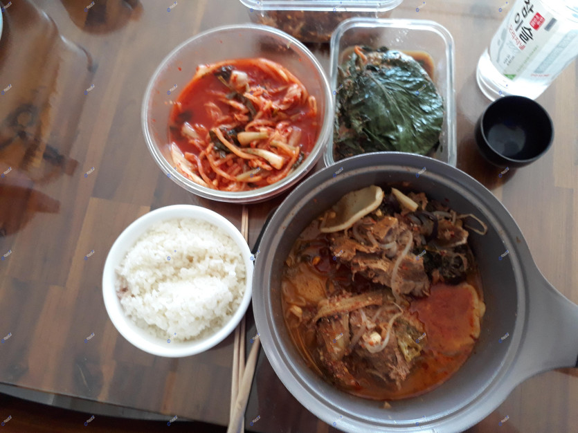 숙취도 풀겸 오늘 점심은 뼈다귀 해장국입니다속이 좀 풀리면서도