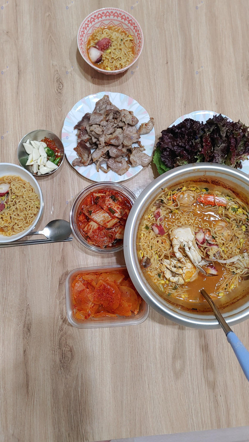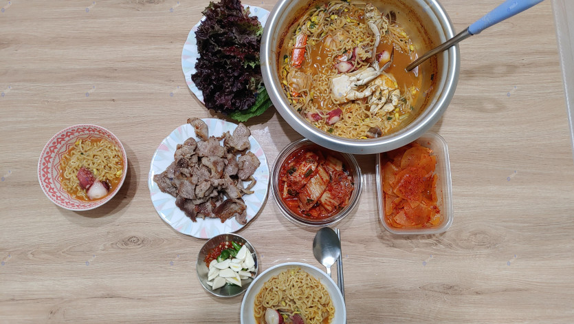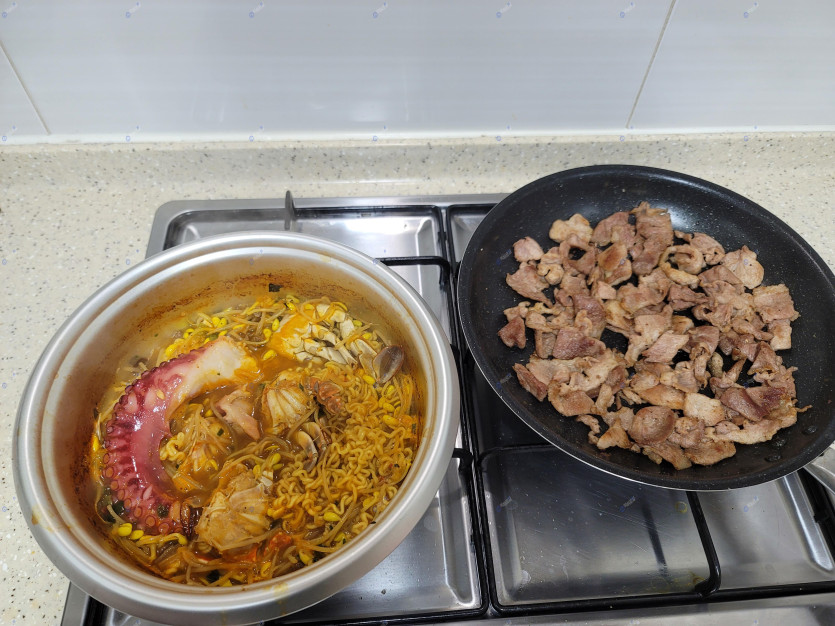 해물라면 앞다리살구이