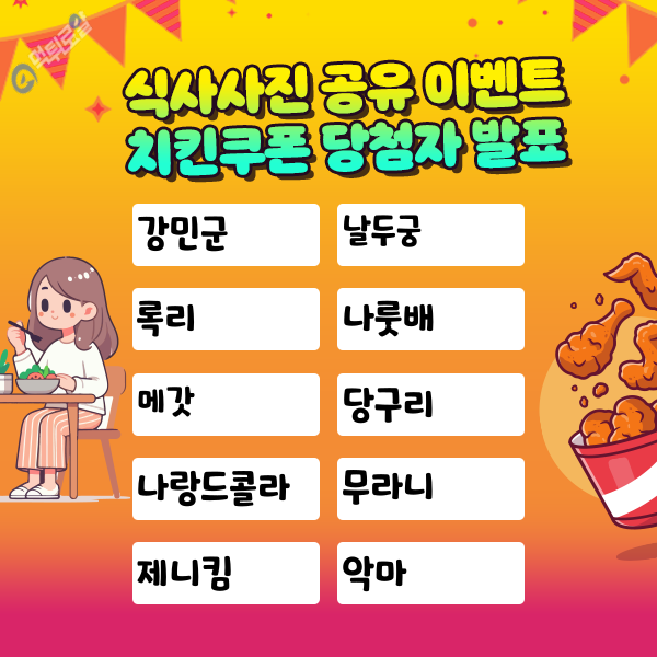 ★ 2월10일~2월16일 식사사진 공유 당첨자 발표 ★
