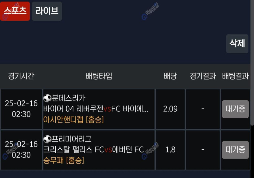 생각대로 가봐여 레버쿠젠 0핸디승 크리스탈펠리스 승~~ 모두 좋은결과 있으시길!