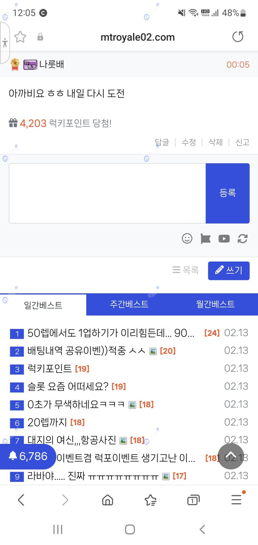 이런 출첵 안댔다고 주는건가요 ㅋ 작성자 정보 나룻배 작성 작성일 2025.02.14 00:06 컨텐츠 정보 279 조회 18 댓글 목록 본문 아이 좋아라 ㅎ 0 추천 신고 관련자료 댓글 18 장갑차님의 댓글 장갑차 작성일 2025.02.14 00:06 우왕 부럽다 ㅎㅎ 알람 6천개 ㄷㄷㄷ 신고 우왕 부럽다 ㅎㅎ 알람 6천개 ㄷㄷㄷ 나룻배님의 댓글의 댓글 나룻배 작성일 2025.02.14 00:07 황송합니다 ㅎㅎ 신고 황송합니다 ㅎㅎ 소용돌이님의 댓글 소용돌이 작성일 2025.02.14 00:08 럭키네요^^ 신고 럭키네요^^ 나룻배님의 댓글의 댓글 나룻배 작성일 2025.02.14 00:09 감사합니다 ㅎㅎ 신고 감사합니다 ㅎㅎ 민바오님의 댓글 민바오 작성일 2025.02.14 00:15 축하드려요~ 신고 축하드려요~ 나룻배님의 댓글의 댓글 나룻배 작성일 2025.02.14 04:43 감사합니다 ㅎㅎ 신고 감사합니다 ㅎㅎ 덕고다이님의 댓글 덕고다이 작성일 2025.02.14 00:55 굿 신고 굿 나룻배님의 댓글의 댓글 나룻배 작성일 2025.02.14 04:43 감사합니다 ㅎㅎ 신고 감사합니다 ㅎㅎ 아이언맨맨님의 댓글 아이언맨맨 작성일 2025.02.14 01:02 열심히하시니 축하드려용 신고 열심히하시니 축하드려용 나룻배님의 댓글의 댓글 나룻배 작성일 2025.02.14 04:43 고맙습니다 ㅎ 신고 고맙습니다 ㅎ 돈키호테님의 댓글 돈키호테 작성일 2025.02.14 01:09 와우 추카추카 신고 와우 추카추카 나룻배님의 댓글의 댓글 나룻배 작성일 2025.02.14 04:43 감사합니다 ㅎㅎ 신고 감사합니다 ㅎㅎ 성남은후님의 댓글 성남은후 작성일 2025.02.14 04:10 추카해요 신고 추카해요 나룻배님의 댓글의 댓글 나룻배 작성일 2025.02.14 04:43 감사합니당 ㅎ 신고 감사합니당 ㅎ 나랑드콜라님의 댓글 나랑드콜라 작성일 2025.02.14 07:11 더 이득인ㅎㅎ 신고 더 이득인ㅎㅎ 나룻배님의 댓글의 댓글 나룻배 작성일 2025.02.14 12:41 그러개요 ㅎ 신고 그러개요 ㅎ 망고마미님의 댓글 망고마미 작성일 2025.02.14 11:02 축하드려용 신고 축하드려용 나룻배님의 댓글의 댓글 나룻배 작성일 2025.02.14 12:41 감사합니다 ㅎㅎ 신고 감사합니다 ㅎㅎ 로그인한 회원만 댓글 등록이 가능합니다. 목록