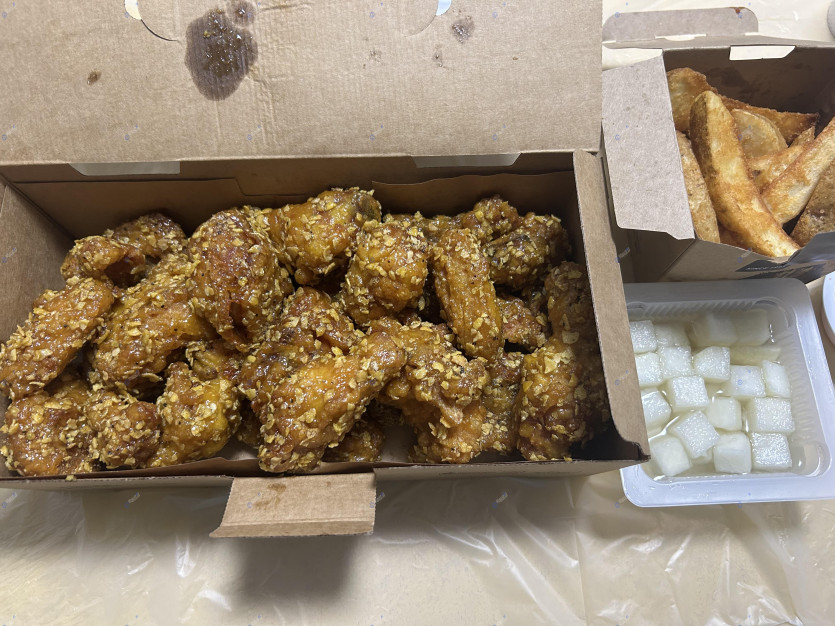 다들 저녁 맛잇게 드시구 교촌 옥수수오리지날 신메뉴 한번씩 드셔보세용 이거 옥수수+허니콤보 같은 느낌이에요
