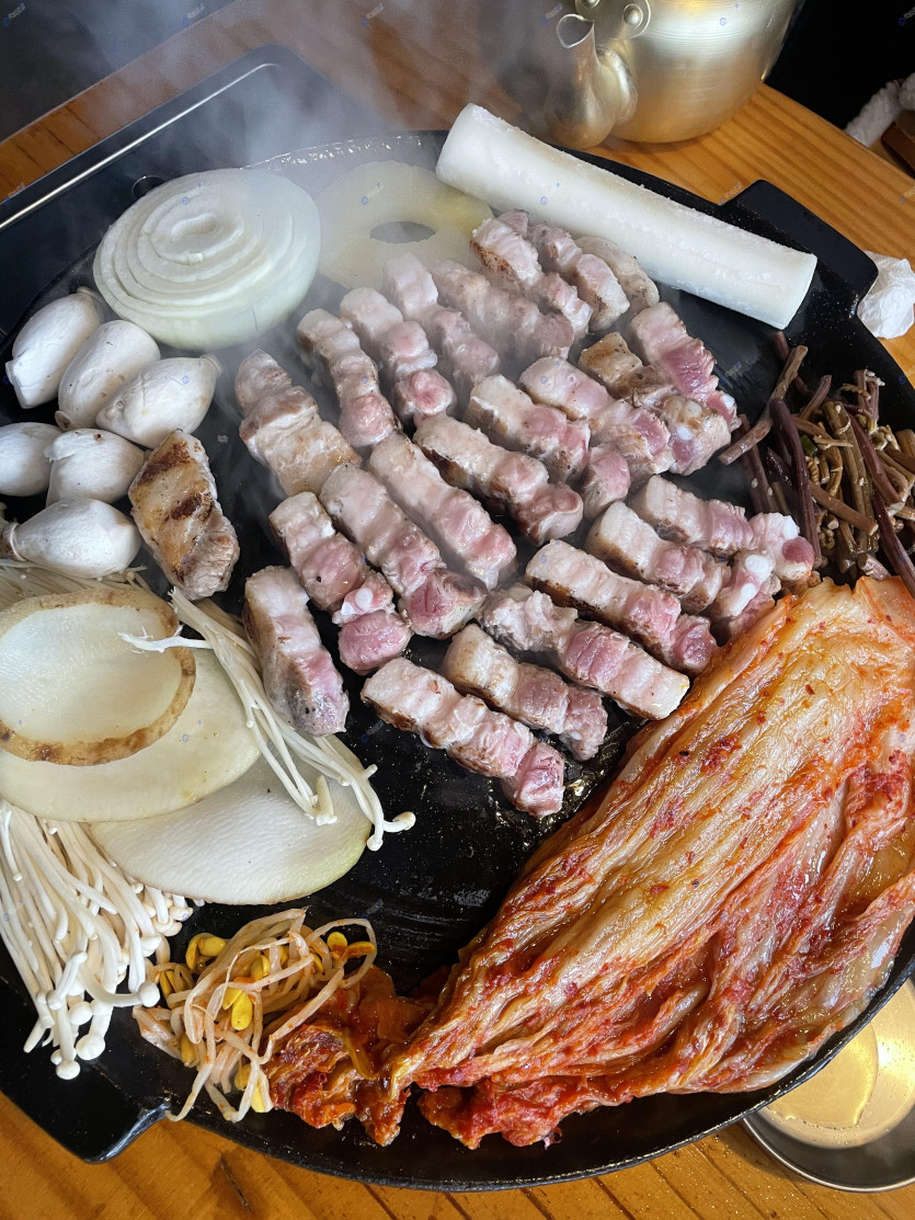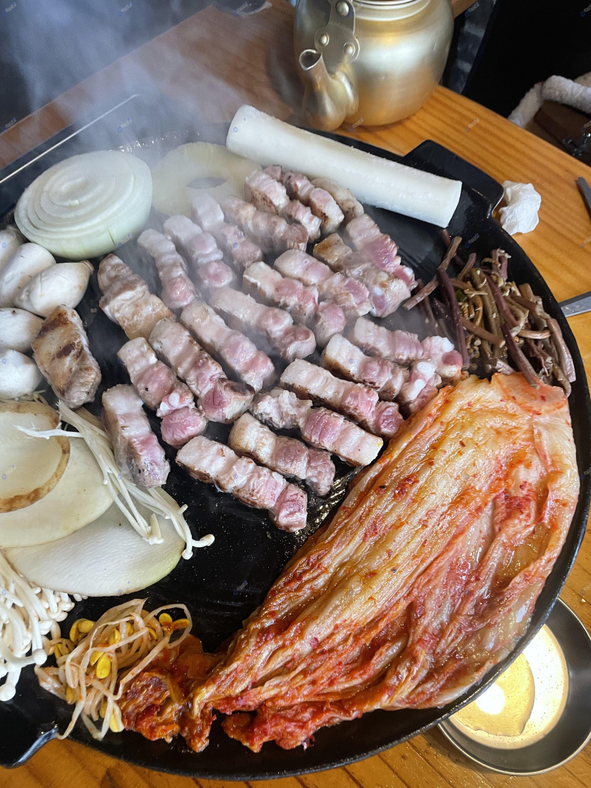 식사이벤트!!!! 솥뚜껑 삼겹살 + 묵은지!!! 야무지게 먹었습니다~!