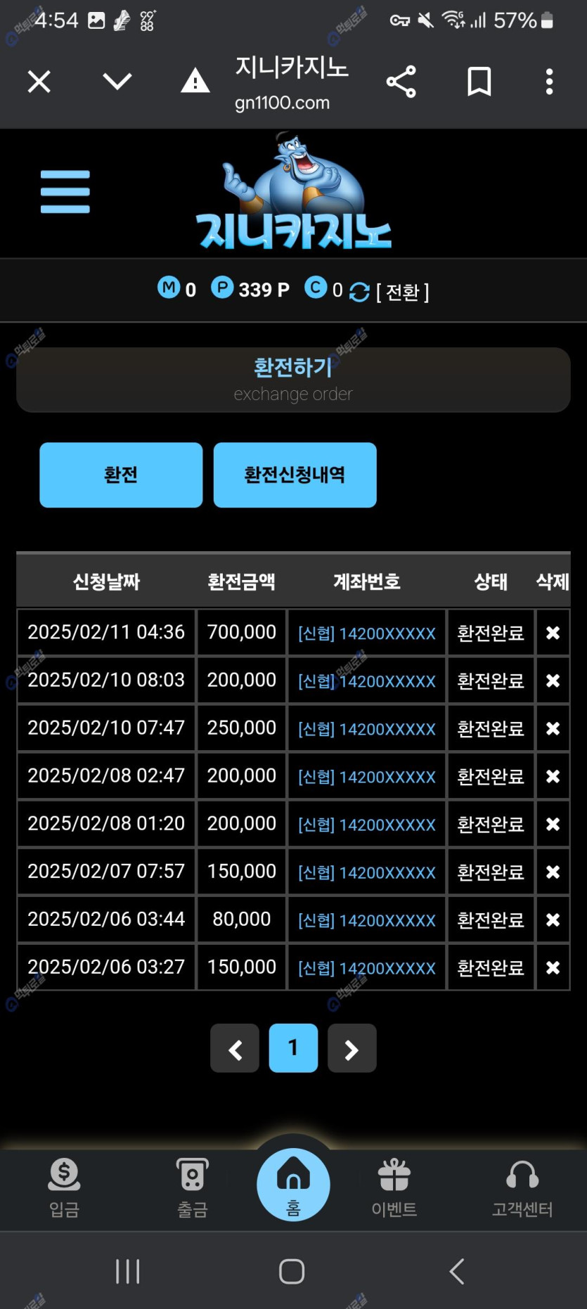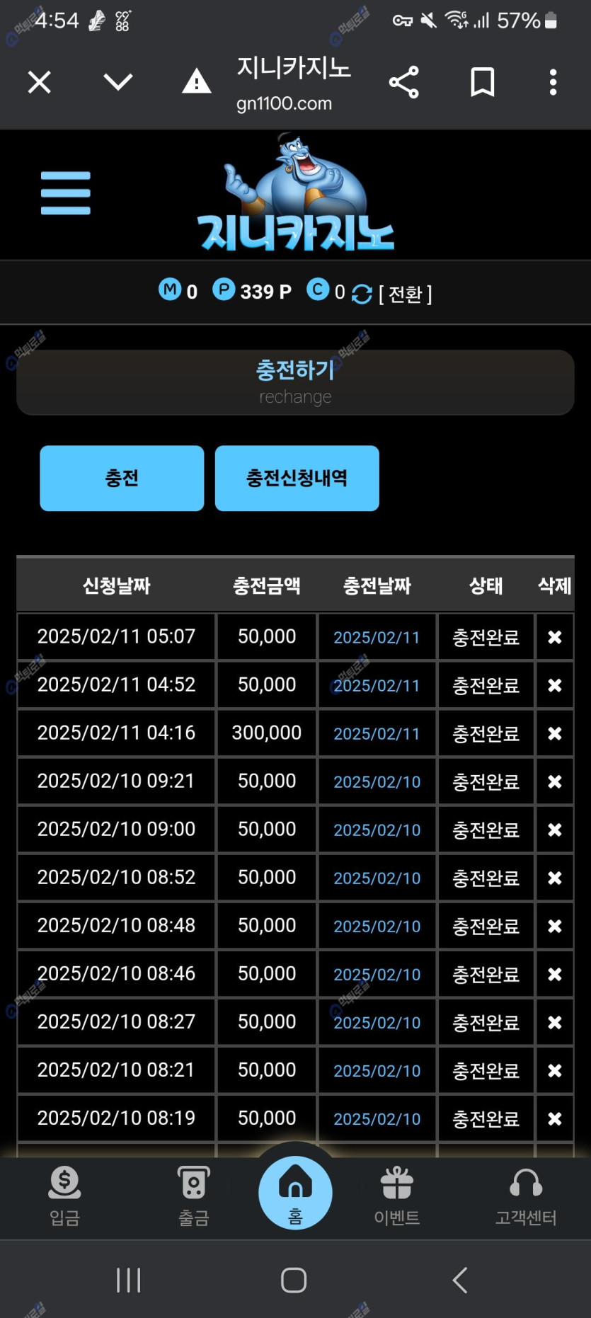 먹튀로얄 통해서 가입한 지니카지노에서 오늘 2월11일