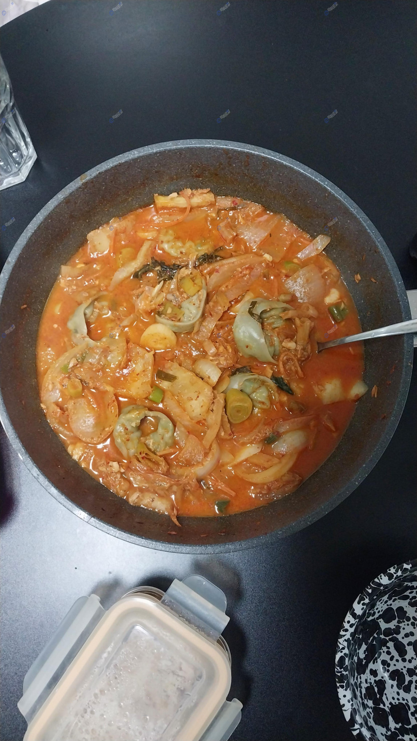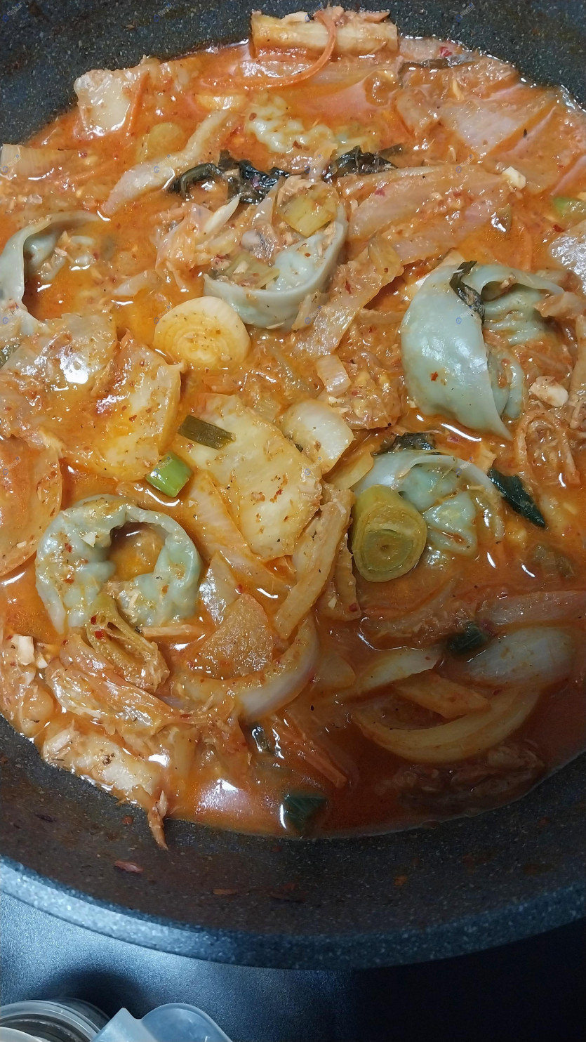오늘 저녁은 손수 끓여본 김치만두전골 ㅋ