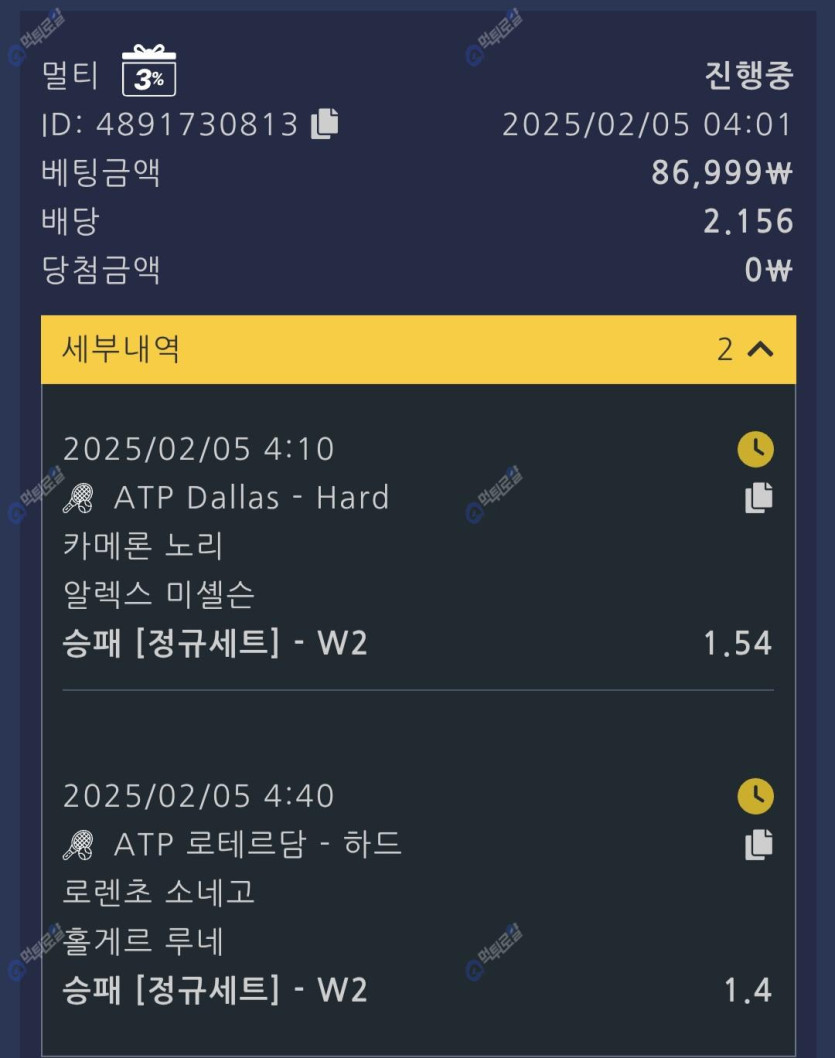 배팅내역 공유 테니스 작성자 정보 눈여우 작성 작성일 2025.02.05 04:03 컨텐츠 정보 315 조회 6 댓글 목록 본문 두폴더 배팅입니다! 0 추천 신고 관련자료 댓글 6 나룻배님의 댓글 나룻배 작성일 2025.02.05 04:14 적중가즈아 신고 적중가즈아 요미치님의 댓글 요미치 작성일 2025.02.05 04:58 적중 기원 신고 적중 기원 성남은후님의 댓글 성남은후 작성일 2025.02.05 06:22 테니스 ㄷㄷ 신고 테니스 ㄷㄷ 망고마미님의 댓글 망고마미 작성일 2025.02.05 10:07 적중가즈ㅏㅇㅇ 신고 적중가즈ㅏㅇㅇ 길거리님의 댓글 길거리 작성일 2025.02.05 10:53 필승하세요! 신고 필승하세요! 쿠쿠케케님의 댓글 쿠쿠케케 작성일 2025.02.05 12:32 정배정배군요 신고 정배정배군요 로그인한 회원만 댓글 등록이 가능합니다. 목록
