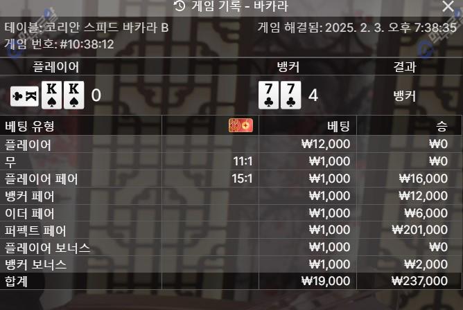 바카라 하다가 재미로 퍼펙트페어 1000원 걸었는데