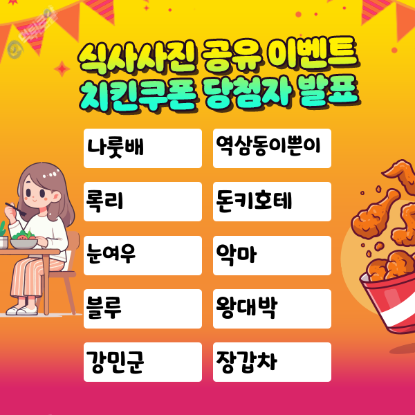 ★ 1월27일~2월2일 식사사진 공유 당첨자 발표 ★