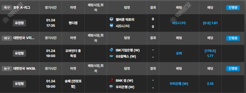배팅공유) 첫경기는 시작했뿟네요.ㅠ 나머지2개 국내 작성자 정보 악마 작성 작성일 2025.01.24 17:43 컨텐츠 정보 285 조회 4 댓글 목록 본문 화이팅입니다.ㅎ 1경기는 시작햇뿟네요 난 아직 남은줄알앗는데시간.ㅠ 무튼 국내경기 다들 화이팅입니다 오늘도!! 0 추천 신고 관련자료 댓글 4 쿠쿠케케님의 댓글 쿠쿠케케 작성일 2025.01.24 17:46 시드니~ 생각이 같으시군용 신고 시드니~ 생각이 같으시군용 나룻배님의 댓글 나룻배 작성일 2025.01.24 18:43 적중가즈아 ㅎ 신고 적중가즈아 ㅎ 프강사님의 댓글 프강사 작성일 2025.01.24 22:02 우리은행 좋네요 신고 우리은행 좋네요 망고마미님의 댓글 망고마미 작성일 2025.01.25 16:10 적중가즈앙 신고 적중가즈앙 로그인한 회원만 댓글 등록이 가능합니다. 목록