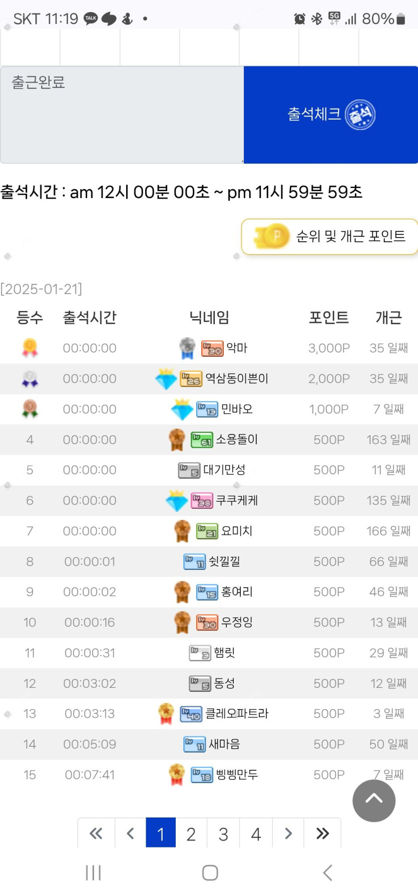 오늘출석 후덜덜했네요