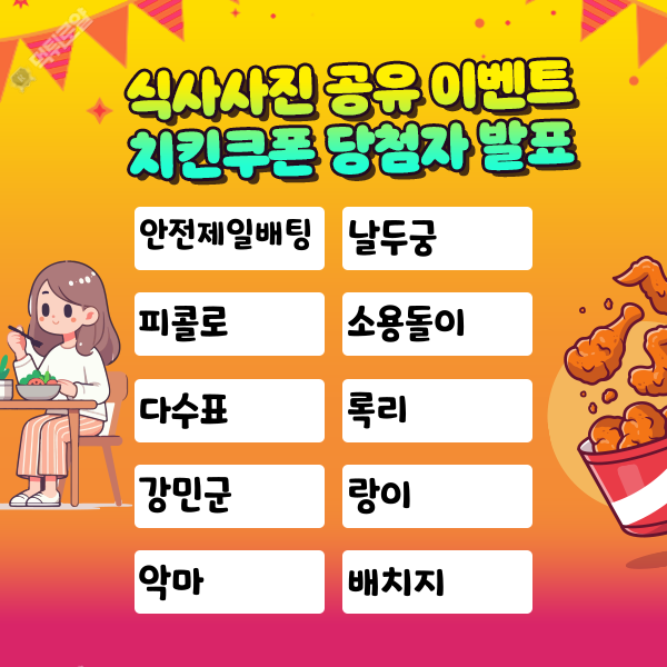 ★ 1월13일~1월19일 식사사진 공유 당첨자 발표 ★