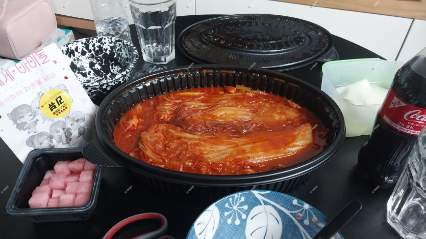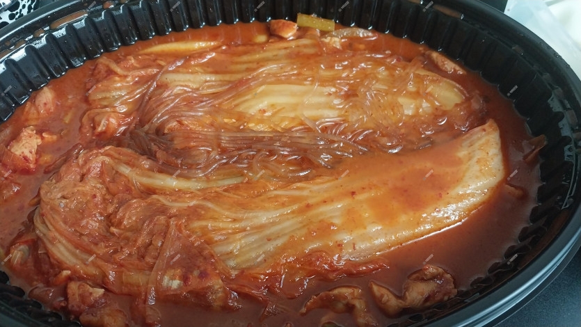 오늘 늦은 점심으로 두찜에서 묵은지 찜닭 시켰네요.
