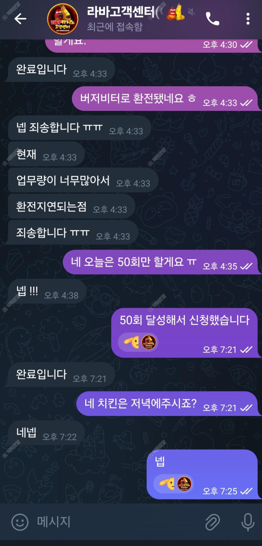 바카라 충전왕 이벤트를 달성하기 위해서 어제 50건 충전했네요. 한 50만원 수익났습니다.