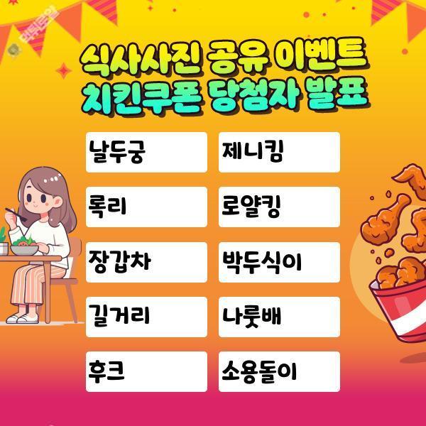식사사진 공유 이벤트 당첨자 발표입니다