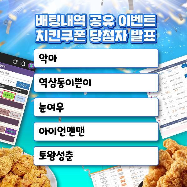 ★ 1월6일~1월12일 배팅공유 당첨자 발표 ★
