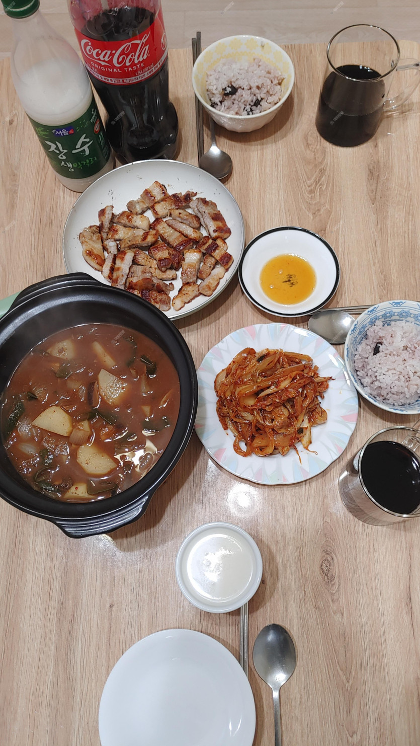 ⭐식사이벤트⭐저녁식사 삼겹살 김치구이 된장찌게