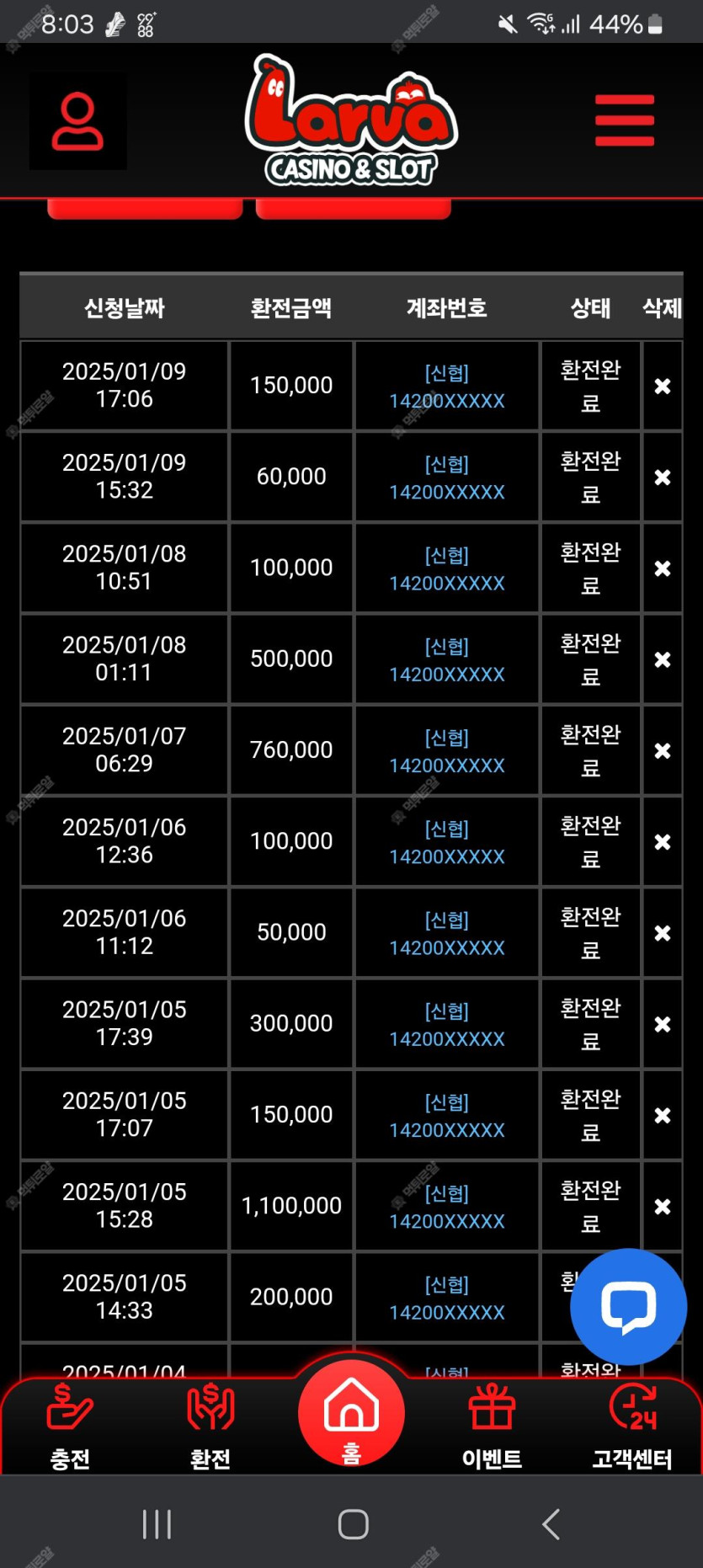 1월5일부터 오늘 9일까지 환전내역입니다.