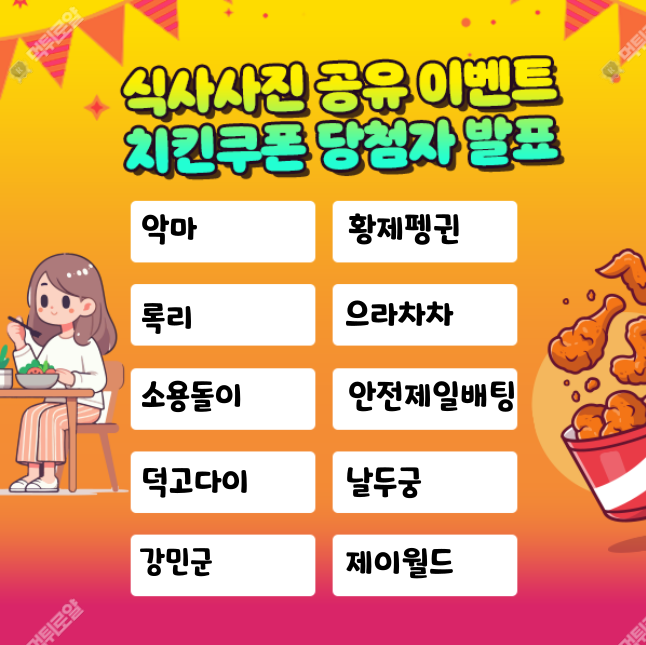 1:1 문의로 치킨쿠폰 요청부탁드립니다.