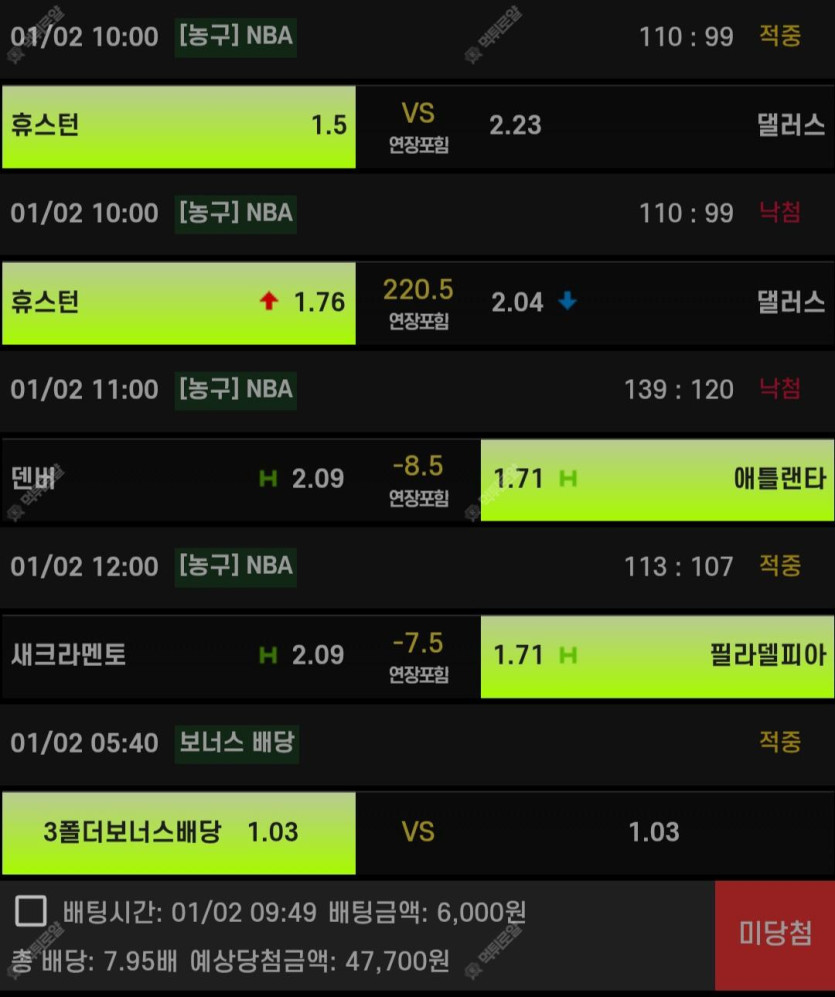 박살나버린 부끄러운 배팅내역ㅜㅜ