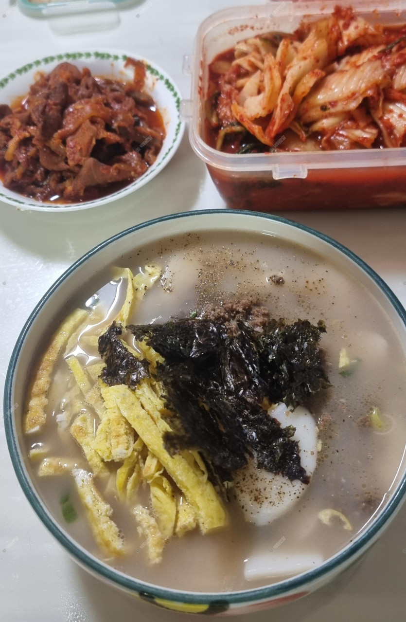 떡국 김치 제육볶음 물