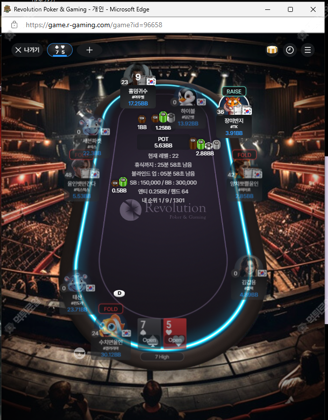 홀덤 프리 토너 작성자 정보 한방원샷 작성 작성일 2024.12.28 22:49 컨텐츠 정보 210 조회 4 댓글 목록 본문 오랜만에 참가 했는데 미세한 칩리더로 파이널 테이블 입성 했습니다. 0 추천 신고 관련자료 댓글 4 더불어님의 댓글 더불어 작성일 2024.12.28 22:53 홧팅해요 신고 홧팅해요 나룻배님의 댓글 나룻배 작성일 2024.12.28 23:07 화이팅 신고 화이팅 한방원샷님의 댓글 한방원샷 작성일 2024.12.28 23:12 1등으로 마무리요. 신고 1등으로 마무리요. 쿠쿠케케님의 댓글 쿠쿠케케 작성일 2024.12.29 00:40 축하드립니당 신고 축하드립니당 로그인한 회원만 댓글 등록이 가능합니다. 목록