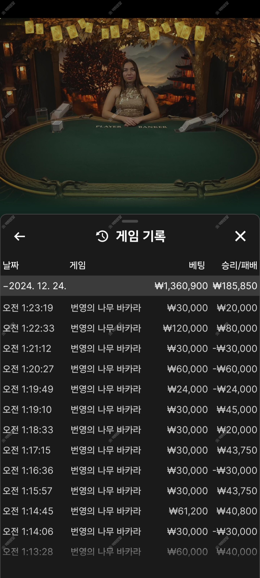 새벽 배당바카라 롤링 배팅 내역 공유합니다~