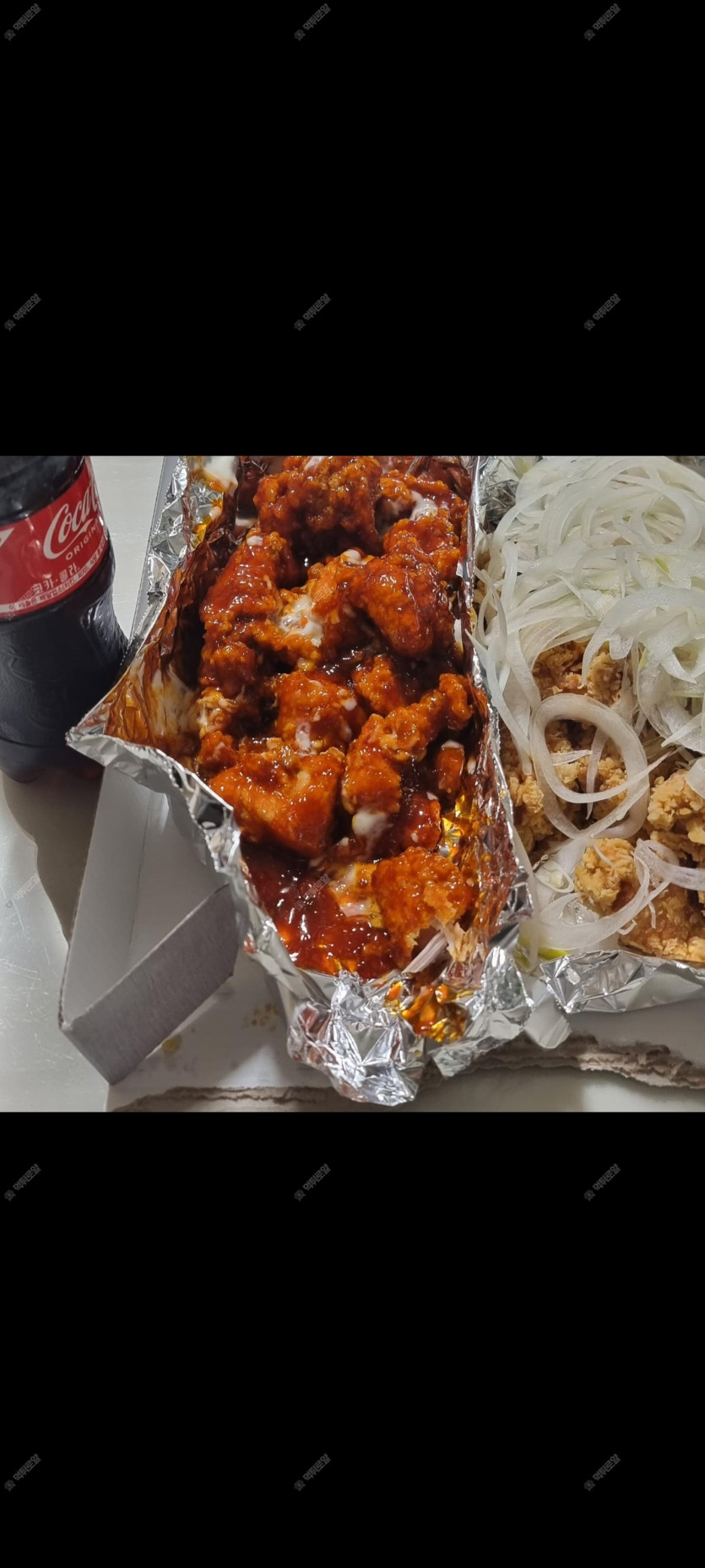 네네치킨 양념반 양파 크리미언반~