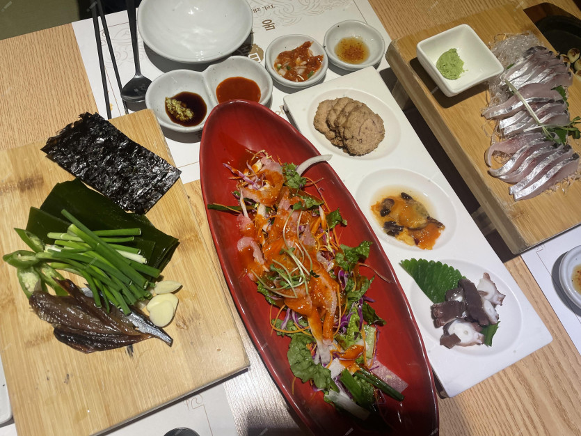 집 앞에 유명한 횟집 다녀왔네요! 세발낙지에 킹크랩에 여러가지 음식들이 있었는데