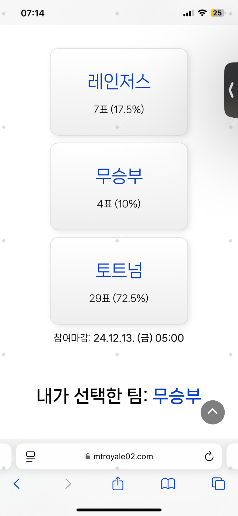 빅맥 또 당첨~ 토트넘 무 ㅎㅎ 작성자 정보 세베잉 작성 작성일 2024.12.13 07:15 컨텐츠 정보 231 조회 9 댓글 목록 본문 좋다좋아 0 추천 신고 관련자료 댓글 9 성남은후님의 댓글 성남은후 작성일 2024.12.13 07:18 추카해요 신고 추카해요 쿠쿠케케님의 댓글 쿠쿠케케 작성일 2024.12.13 08:20 오 멋있어 신고 오 멋있어 캐리니님의 댓글 캐리니 작성일 2024.12.13 08:23 ㅊㅋㅊㅋ 신고 ㅊㅋㅊㅋ 날두궁님의 댓글 날두궁 작성일 2024.12.13 08:39 와 이게 무승부라니!! 부럽습니다ㅠㅠ 신고 와 이게 무승부라니!! 부럽습니다ㅠㅠ 나룻배님의 댓글 나룻배 작성일 2024.12.13 09:55 축하드려요 신고 축하드려요 록리님의 댓글 록리 작성일 2024.12.13 13:31 축하합니다 신고 축하합니다 망고마미님의 댓글 망고마미 작성일 2024.12.13 21:10 축하해용ㅎㅎㅎㅎㅎ 신고 축하해용ㅎㅎㅎㅎㅎ 마가온나님의 댓글 마가온나 작성일 2024.12.14 14:02 축하드려요 신고 축하드려요 조기헌님의 댓글 조기헌 작성일 2024.12.14 20:15 ㄷ 신고 ㄷ 로그인한 회원만 댓글 등록이 가능합니다. 목록