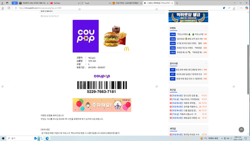 이벤트당첨 작성자 정보 프강사 작성 작성일 2024.12.09 16:11 컨텐츠 정보 207 조회 7 댓글 목록 본문 감사합니다 잘먹을게요 이벤트 상품도 좋지만 문제가 어렵지 않아서 참여하기 좋아요 번창하세요 0 추천 신고 관련자료 댓글 7 나룻배님의 댓글 나룻배 작성일 2024.12.09 16:15 축하드려요 신고 축하드려요 소용돌이님의 댓글 소용돌이 작성일 2024.12.09 16:18 앗 쿠폰번호 노출을!ㅎㅎ 축하드립니다! 신고 앗 쿠폰번호 노출을!ㅎㅎ 축하드립니다! 강민군님의 댓글 강민군 작성일 2024.12.09 16:53 쿠폰번호 노출됐어요~~~ㅠㅠ 신고 쿠폰번호 노출됐어요~~~ㅠㅠ 악마님의 댓글 악마 작성일 2024.12.09 17:24 축하드려요~ㅎ 신고 축하드려요~ㅎ 프강사님의 댓글 프강사 작성일 2024.12.09 18:46 실수햇네 뛰어가서 먹어야겟다 신고 실수햇네 뛰어가서 먹어야겟다 소용돌이님의 댓글의 댓글 소용돌이 작성일 2024.12.09 20:12 빨리요!ㅎㅎㅎ 신고 빨리요!ㅎㅎㅎ 망고마미님의 댓글 망고마미 작성일 2024.12.12 20:00 축하해용ㅎㅎㅎㅎㅎ 신고 축하해용ㅎㅎㅎㅎㅎ 로그인한 회원만 댓글 등록이 가능합니다. 목록