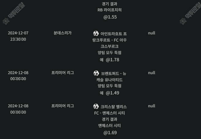배팅공유 ) 한폴낙 진짜 제발 ! 작성자 정보 역삼동이쁜이 작성 작성일 2024.12.08 02:02 컨텐츠 정보 234 조회 3 댓글 목록 본문 더비 맨시티 때문에 사이좋게 한폴낙씩 진짜 하 안되네 어질어질 합니다 아주 0 추천 신고 관련자료 댓글 3 덕고다이님의 댓글 덕고다이 작성일 2024.12.08 02:02 까비요 신고 까비요 나룻배님의 댓글 나룻배 작성일 2024.12.08 09:05 안타깝다 ㅠㅠ 신고 안타깝다 ㅠㅠ 망고마미님의 댓글 망고마미 작성일 2024.12.08 17:52 꺼비 ㅠㅠㅠㅠㅠㅠ 신고 꺼비 ㅠㅠㅠㅠㅠㅠ 로그인한 회원만 댓글 등록이 가능합니다. 목록