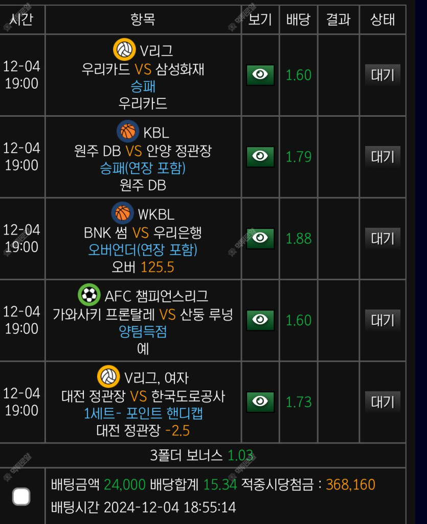베팅내역공유이벤트) 오늘도 참여합니다 ㅎㅎ 작성자 정보 루마타나 작성 작성일 2024.12.04 18:57 컨텐츠 정보 230 조회 4 댓글 목록 본문 느바아쉽게 한폴낙 났네요 ㅎㅎ 클블 언더 멤피스 승 디트 오버 피닉스 마핸 쪼매 아쉬워서 오늘 국내 적중하려 합니닷 ㅎㅎ 0 추천 신고 관련자료 댓글 4 아이엠그루트님의 댓글 아이엠그루트 작성일 2024.12.04 19:33 건승건승! 신고 건승건승! 밀키스님의 댓글 밀키스 작성일 2024.12.04 20:00 ㅎㅇㅌ!! 신고 ㅎㅇㅌ!! 나룻배님의 댓글 나룻배 작성일 2024.12.04 20:45 건승하새요 신고 건승하새요 망고마미님의 댓글 망고마미 작성일 2024.12.05 18:36 건승하세용!!!! 신고 건승하세용!!!! 로그인한 회원만 댓글 등록이 가능합니다. 목록