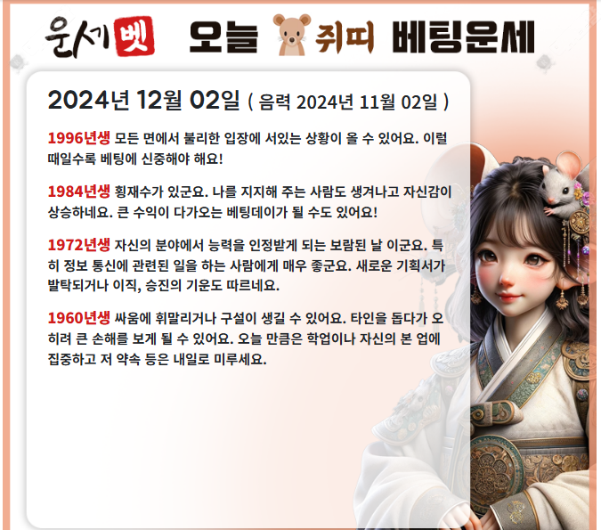 한주의 시작 월요일 오전부터 베팅달려보는거지! 작성자 정보 운세맨 작성 작성일 2024.12.01 23:10 컨텐츠 정보 244 조회 2 댓글 목록 본문 운세보고 조합잘맞춰서 가보자! 0 추천 신고 관련자료 댓글 2 나룻배님의 댓글 나룻배 작성일 2024.12.02 10:27 건승하새요 ㅎㅎ 신고 건승하새요 ㅎㅎ 망고마미님의 댓글 망고마미 작성일 2024.12.02 14:37 건승하세요~~~ 신고 건승하세요~~~ 로그인한 회원만 댓글 등록이 가능합니다. 목록
