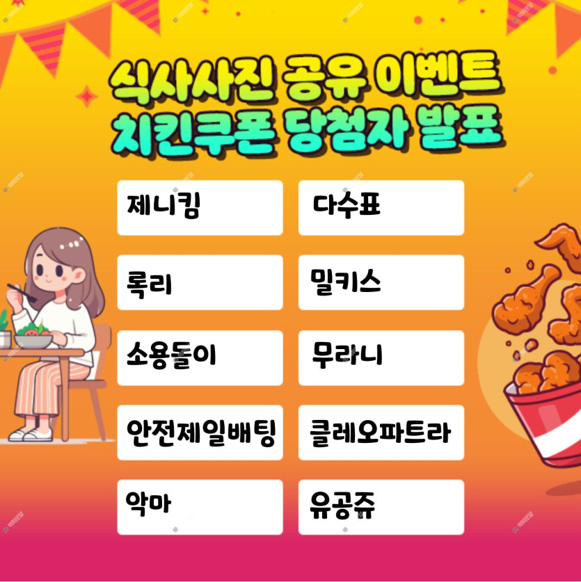 1:1 문의로 치킨쿠폰 요청부탁드립니다.