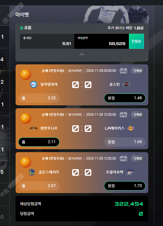 배팅공유 작성자 정보 프강사 작성 작성일 2024.11.28 01:06 컨텐츠 정보 270 조회 3 댓글 목록 본문 다같이 적중해 보아요 0 추천 신고 관련자료 댓글 3 세베잉님의 댓글 세베잉 작성일 2024.11.28 04:58 챔스 안 가시고 느바를 가셨군요 화이팅! 신고 챔스 안 가시고 느바를 가셨군요 화이팅! 나룻배님의 댓글 나룻배 작성일 2024.11.28 09:08 건승하새요 신고 건승하새요 망고마미님의 댓글 망고마미 작성일 2024.11.28 21:52 건승하세요~~ 신고 건승하세요~~ 로그인한 회원만 댓글 등록이 가능합니다. 목록