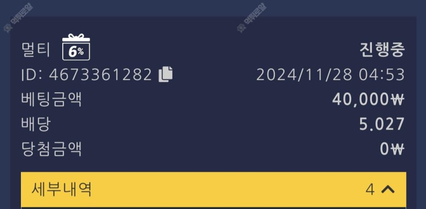 배팅내역 공유이벤트 작성자 정보 눈여우 작성 작성일 2024.11.28 04:57 컨텐츠 정보 218 조회 5 댓글 목록 본문 눈오는 야심한 새벽배팅.. 먹을수 있을까요? 0 추천 신고 관련자료 댓글 5 꾸까님의 댓글 꾸까 작성일 2024.11.28 07:45 드셨나유 ? 신고 드셨나유 ? 망고마미님의 댓글의 댓글 망고마미 작성일 2024.11.28 21:55 그러게요 결과는!? 신고 그러게요 결과는!? 나룻배님의 댓글 나룻배 작성일 2024.11.28 09:06 건승하새요 신고 건승하새요 돈키호테님의 댓글 돈키호테 작성일 2024.11.28 09:32 건승하세요 신고 건승하세요 망고마미님의 댓글 망고마미 작성일 2024.11.28 21:54 건승요.... 신고 건승요.... 로그인한 회원만 댓글 등록이 가능합니다. 목록